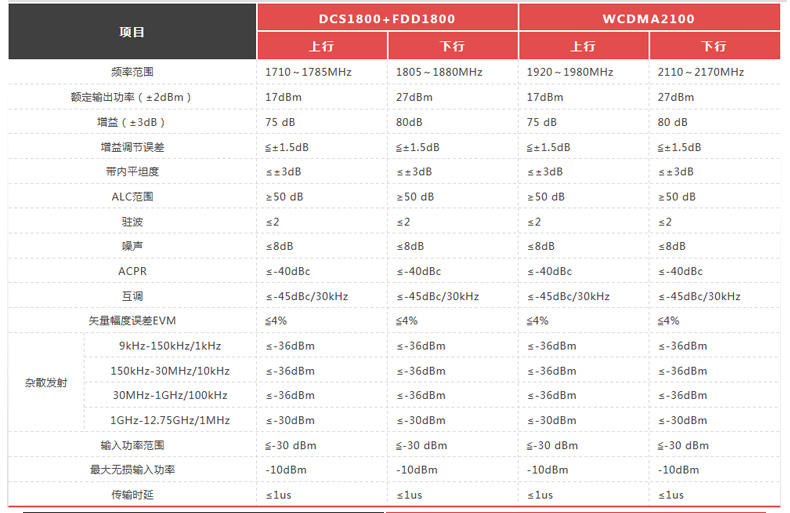 WCDMA 2100: 1940-1955MHz/2130-2145MHz(上行/下行)