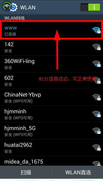 圖 20:恭喜你新擴(kuò)展的Wifi已連上,手機(jī)、電腦、平板及多媒體電子產(chǎn)品可接收、分享來(lái)自擴(kuò)展器發(fā)射這個(gè)增強(qiáng)數(shù)倍Wifi信號(hào)了