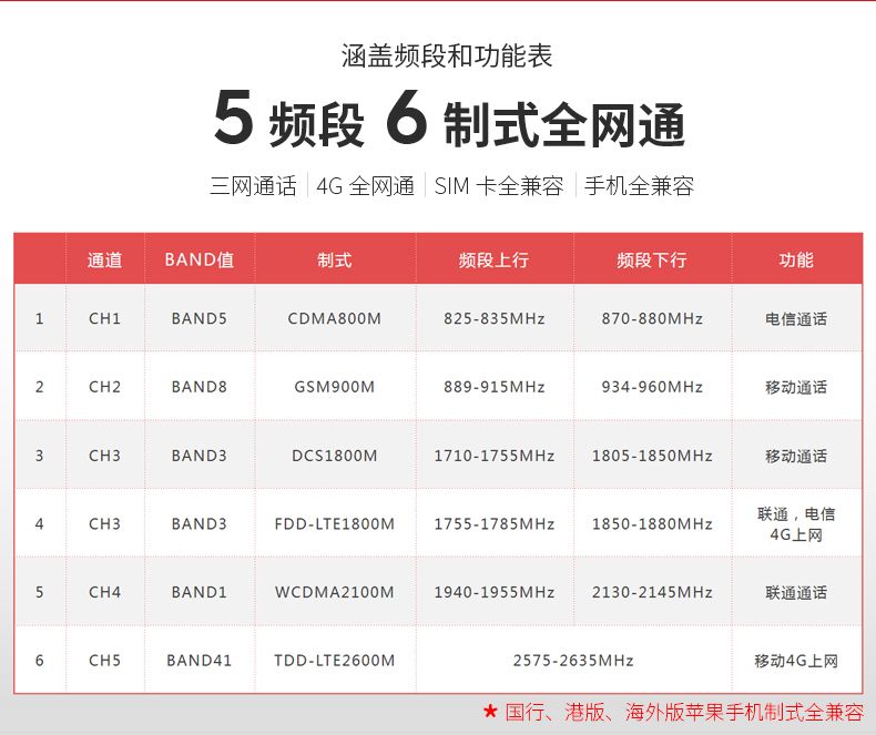 DCS 1800: 1710-1755MHz/1805-1850MHz(上行/下行)