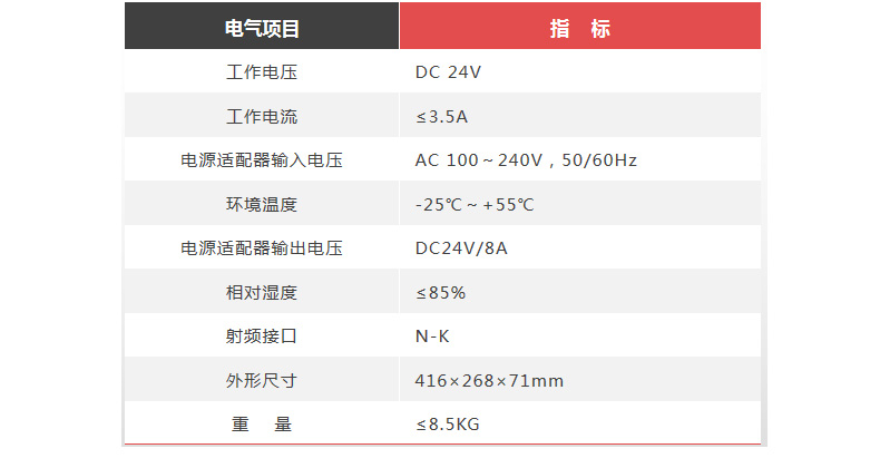 增益調(diào)節(jié)誤差:增益在0~20dB時,誤差≤1dB;增益在21~25dB時,誤差≤1.5dB