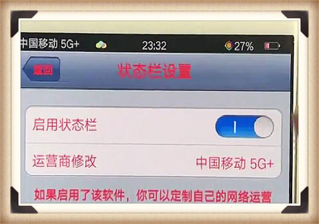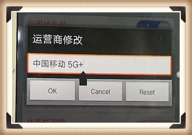 接著我們點擊運營商修改,在這里你可以自定義文字,比如我們在這里輸入“中國移動5G”,中間空格一下,效果會更加的逼真哦。設(shè)置完成后,屏幕上方就會出現(xiàn)5G新號的效果啦。