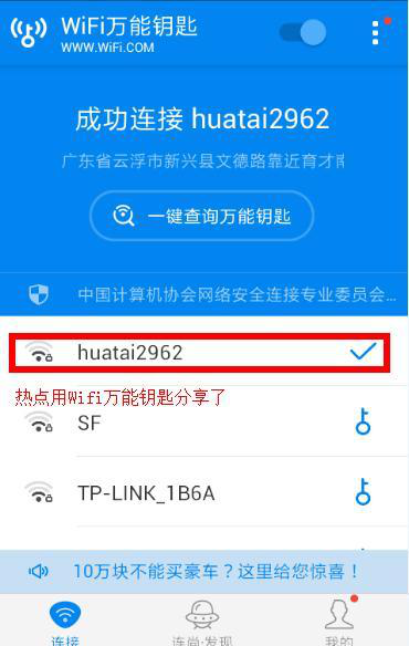 圖2: 點(diǎn)擊鑰匙標(biāo)熱點(diǎn)被分享,已成功連接