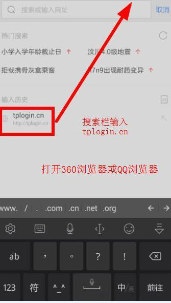 圖 10:打開(kāi)360 瀏覽器(QQ瀏覽器亦可),并在搜索欄上輸上tplogin.cn,搜索