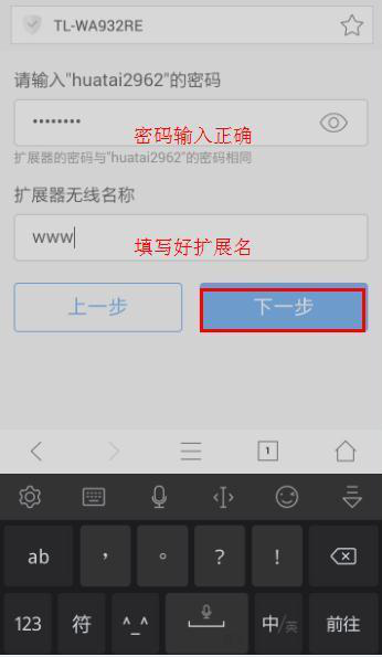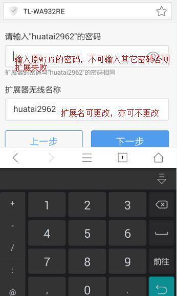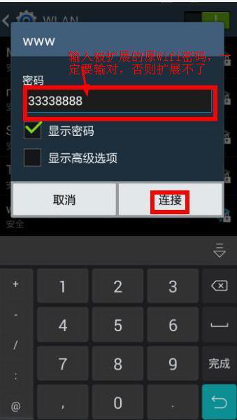 圖 15:輸入原Wifi密碼,不可輸錯(cuò),否則擴(kuò)展失敗;還有更改擴(kuò)展名(給Wifi起個(gè)新名字)